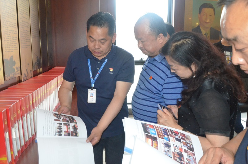 在紫金實(shí)業(yè)集團(tuán)工會主席湯建國的帶領(lǐng)下,大家首先參觀了業(yè)務(wù)大廳和各類活動室,了解其主要工作范疇和工作方式;隨后參觀主題教育活動室、黨員宣誓儀式廳,查閱了黨建資料,觀看了宣傳影片,最后在黨員活動室進(jìn)行了座談交流,聽取了紫金實(shí)業(yè)集團(tuán)黨支部標(biāo)準(zhǔn)化建設(shè)經(jīng)驗(yàn)介紹。
