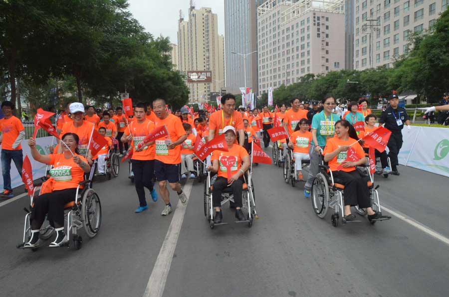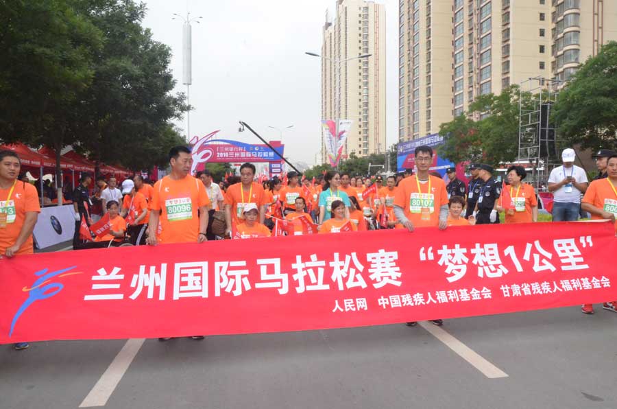 6月11日,蘭州馬拉松組委會、人民網(wǎng)、中國殘疾人福利基金會和甘肅省殘聯(lián)、甘肅省殘疾人福利基金會共同推出蘭州國際馬拉松賽“愛的民益-夢想1公里”公益項目?!皭鄣拿褚妗獕粝?公里”是一次跨界嘗試,與2016蘭州國際馬拉松賽事相結(jié)合,在常規(guī)馬拉松賽事上為殘疾人設(shè)計距離為1公里的馬拉松體驗跑,同樣設(shè)置撞線、頒獎環(huán)節(jié)。此項活動在不影響常規(guī)馬拉松賽的前提下,讓殘疾人享受沿途群眾的歡呼加油,為他們“從‘心’站起來”、融入社會建立自信。
