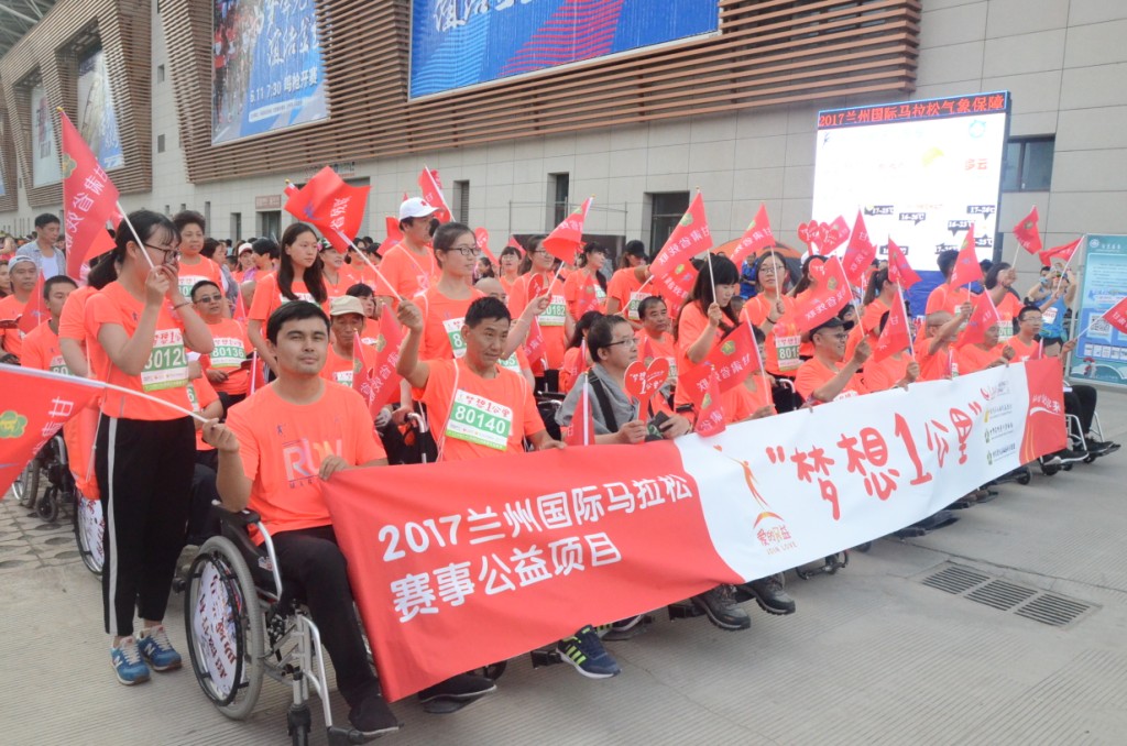 “夢(mèng)想1公里”是在蘭州馬拉松常規(guī)賽事中專(zhuān)門(mén)為殘疾人設(shè)計(jì)的距離為1公里的馬拉松體驗(yàn)跑,是甘肅省迄今組織的規(guī)模最大、參賽人數(shù)最多的殘疾人國(guó)際賽事,也是深受殘疾人及其親屬和廣大群眾喜愛(ài)的一項(xiàng)社會(huì)活動(dòng)。殘疾人無(wú)論在賽場(chǎng)上取得什么樣的成績(jī),最重要的是通過(guò)體育運(yùn)動(dòng)康復(fù)了身體、融入了社會(huì)、激發(fā)了生命活力,努力與健全人一道邁入全面小康社會(huì)。蘭馬賽把馬拉松精神和賽事公益的信念通過(guò)“夢(mèng)想1公里”向全社會(huì)傳遞,鼓勵(lì)更多的人善待自己、關(guān)心他人,促進(jìn)扶弱濟(jì)殘社會(huì)主義道德風(fēng)尚的進(jìn)一步形成。