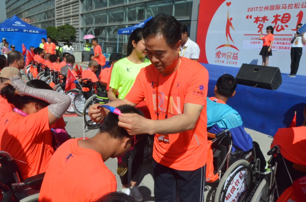 為幫助殘疾人更好地建立信心、融入社會(huì), 6月11日,蘭州國(guó)際馬拉松賽組委會(huì)、人民網(wǎng)和北京中跡體育管理有限公司、中國(guó)殘疾人福利基金會(huì)和甘肅省殘疾人聯(lián)合會(huì)、甘肅省殘疾人福利基金會(huì)在蘭州共同舉行“愛(ài)的民益-夢(mèng)想1公里”公益項(xiàng)目。今年的“夢(mèng)想1公里”繼續(xù)與蘭州國(guó)際馬拉松賽事相結(jié)合,不僅設(shè)置撞線、頒獎(jiǎng)環(huán)節(jié),還增加了鳴槍環(huán)節(jié)。參賽隊(duì)伍也更為壯大,有90名殘疾人士、90名陪護(hù)人員和20名工作人員,共計(jì)200人參加賽程。