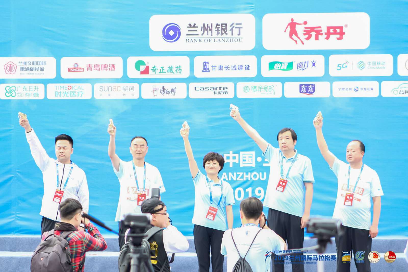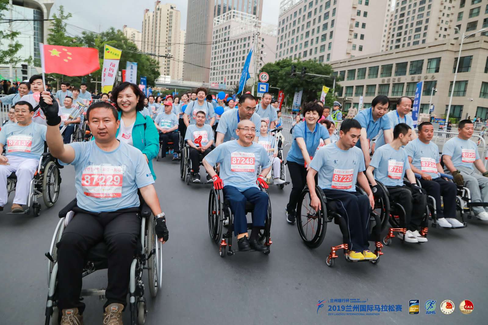 蘭馬賽早上8點(diǎn)30分,主辦方領(lǐng)導(dǎo)中國殘疾人福利基金會宣傳活動部副部長常達(dá),蘭州市副市長馬彩蕓,承辦方領(lǐng)導(dǎo)甘肅省殘聯(lián)黨組成員、副理事長蔣錄基和省殘疾人福利基金會理事長馬新平,在蘭馬賽主席臺鳴槍并參加賽跑。隨著發(fā)令槍響,參賽殘疾人和陪跑員一同沖過起點(diǎn),開始1公里的征程,沿途觀眾激情地送上熱烈的掌聲和歡呼聲,向殘疾人運(yùn)動員表示了深切的關(guān)愛和祝福。