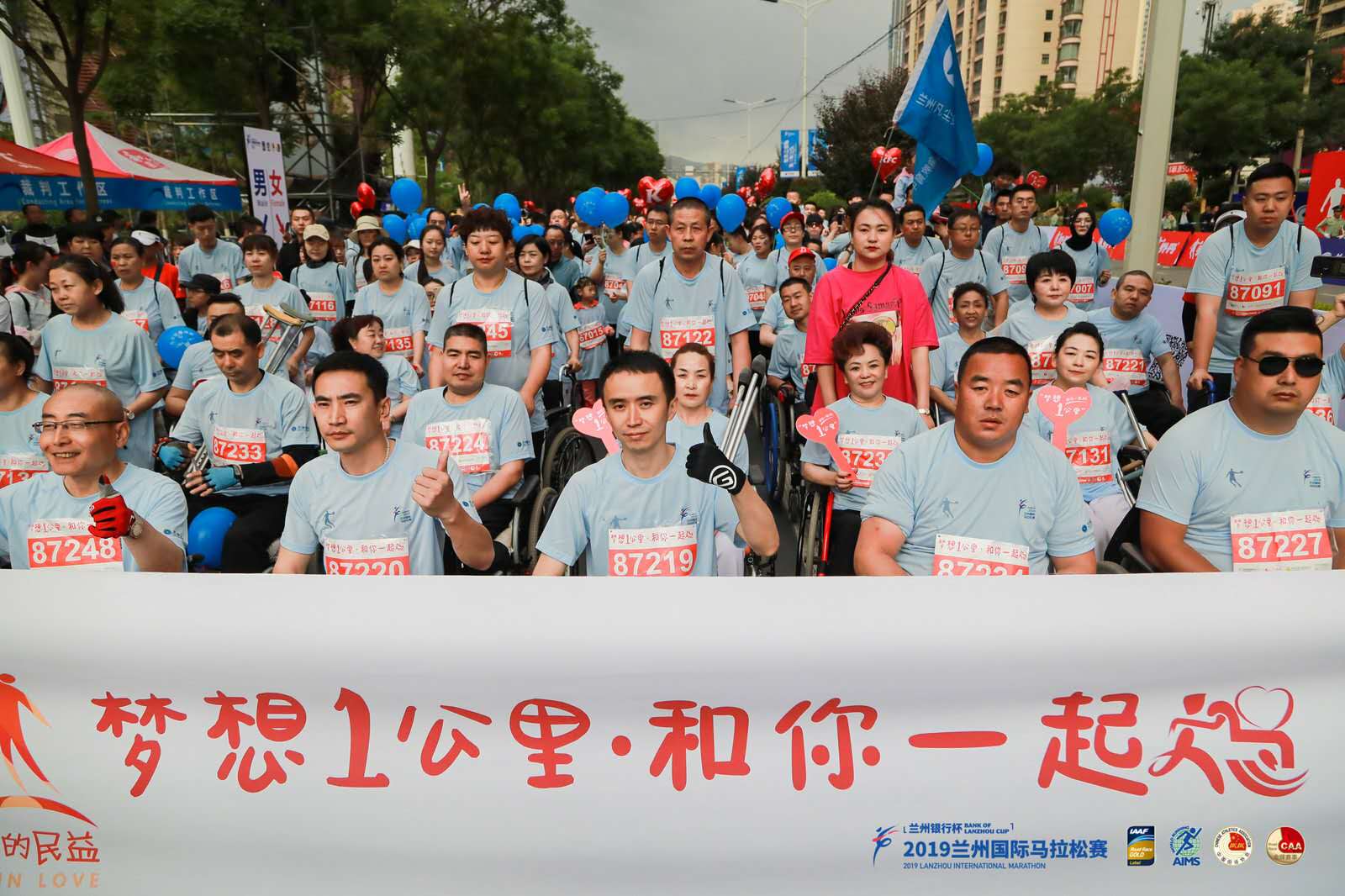 "夢想1公里•和你一起跑"愛心公益跑活動,由人民網(wǎng)、中國殘疾人福利基金會、北京中跡體育共同發(fā)起,是一場讓殘疾人在陪跑員陪伴下圓夢奔跑的馬拉松配套公益活動。該項(xiàng)目是在蘭州國際馬拉松賽常規(guī)賽事中專門為殘疾人設(shè)計(jì)的距離為1公里的馬拉松體驗(yàn)跑,旨在將善意和信念通過奔跑植根于參與者內(nèi)心,用"陪伴""尊重""融合"的態(tài)度展現(xiàn)"蘭馬"的核心價(jià)值觀,鼓勵(lì)更多人關(guān)愛殘疾人朋友。這一活動自2016年蘭州國際馬拉松賽首次落地以來,至今已走過4個(gè)年頭,今年的活動招募了100位肢體殘疾人、10位心懷奔跑夢想的盲人和25名特殊兒童,他們在陪跑員的陪伴下跑完了1公里賽程。