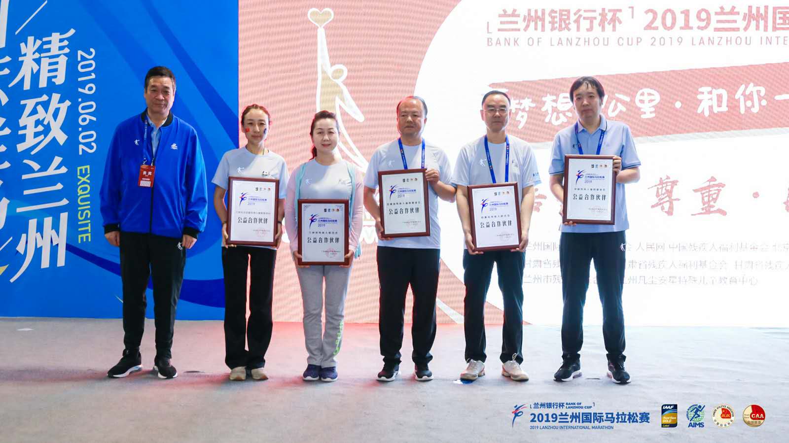 賽跑結(jié)束后,蘭馬組委會、甘肅省體育局副局長劉新平為"夢想1公里•和你一起跑"五家公益合作伙伴授牌,中國殘疾人福利基金會宣傳部副部長常達(dá)、省殘聯(lián)副理事長蔣錄基、甘肅省殘疾人福利基金會代表馬新平、蘭州市殘聯(lián)黨組成員、副理事長張軍、蘭州凡塵安星特殊兒童教育中心主任張娟上臺接受授牌!之后,省殘疾人藝術(shù)團(tuán)演員表演了展現(xiàn)殘疾人特殊藝術(shù)的優(yōu)美文藝節(jié)目。